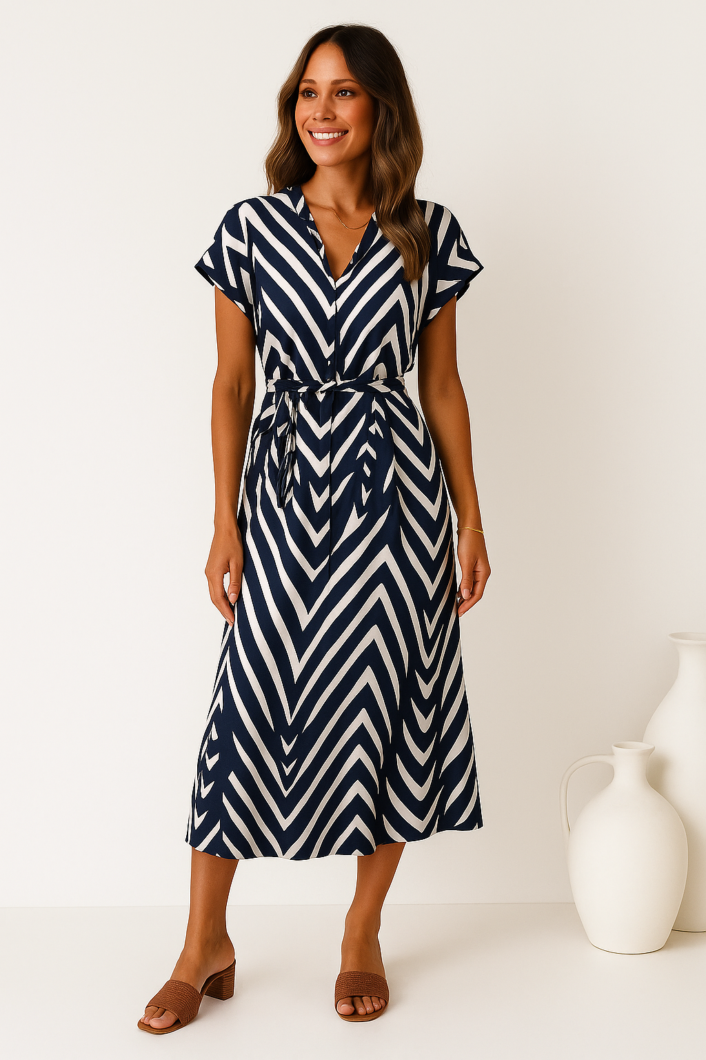 Træd ind i en verden af moderne elegance med frederika geometrisk printet kjole med bindebånd i taljen. Designet til at kombinere dristige mønstre med en flatterende silhuet, er denne kjole perfekt til dem, der værdsætter både stil og komfort. Uanset om du skal til brunch i weekenden eller en aftenbegivenhed, tilføjer bindebåndet et skræddersyet touch, mens det geometriske print sikrer, at du skiller dig ud på den mest sofistikerede måde.