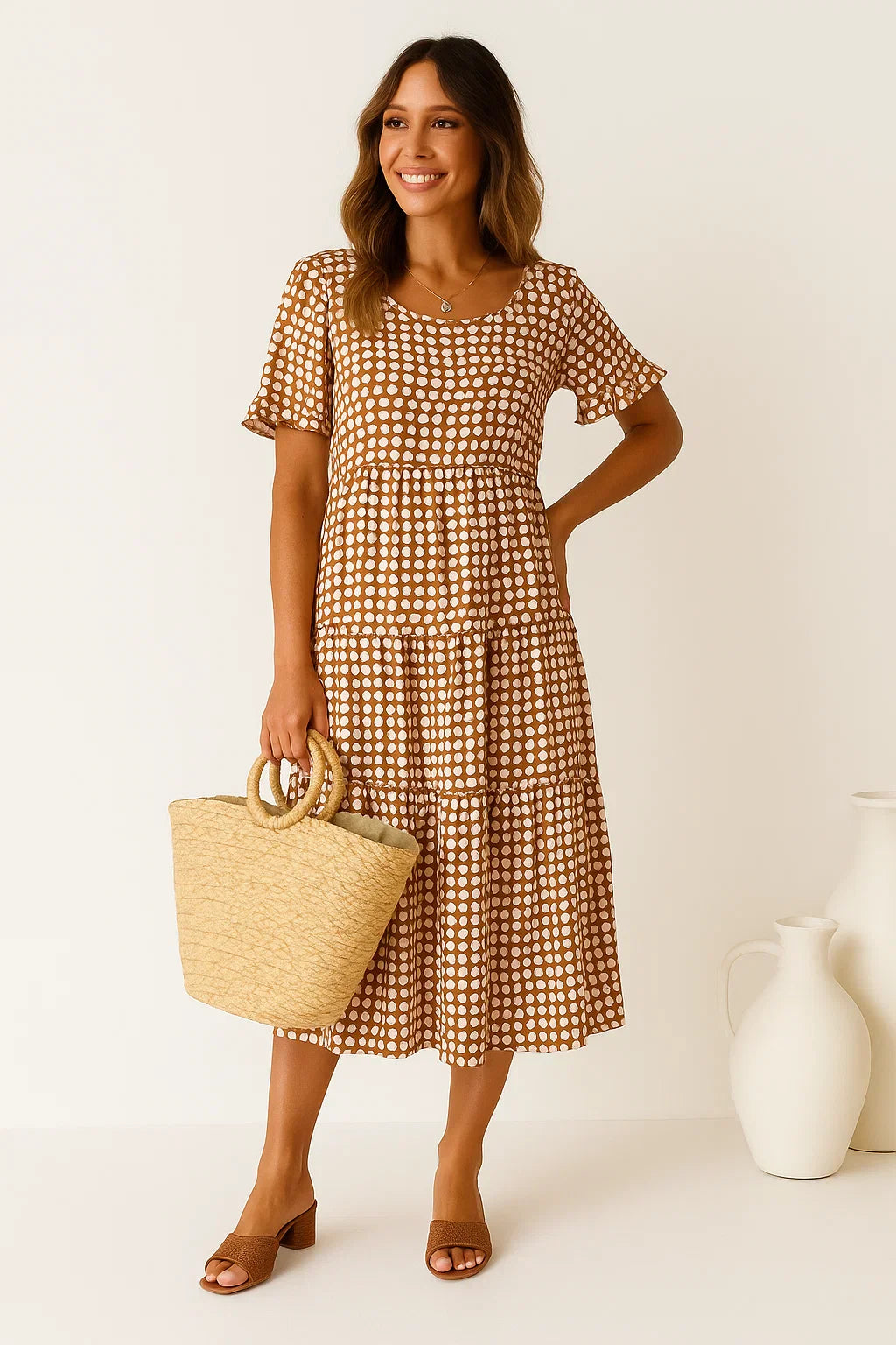 Lovaé™ | Midi-kjole med rund hals i prikket mønster
