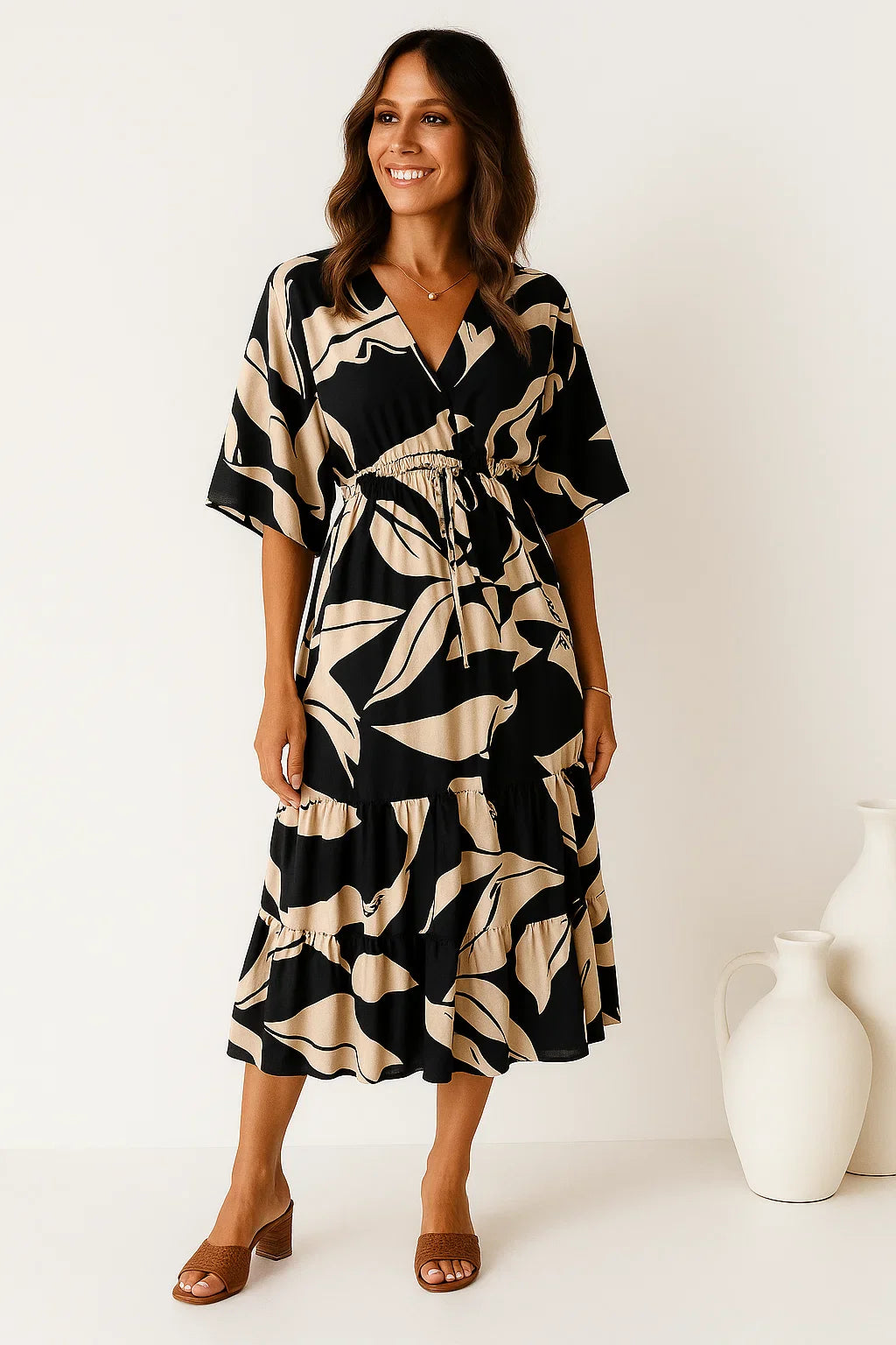 Lovaé™ | V-ringet elegant kjole med trekvartærmer og snøre